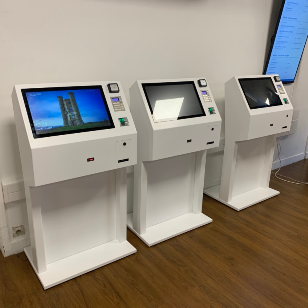 Nos bornes sont équipées de PC intégrés. Ici, il se trouve dans la partie sous l'écran.