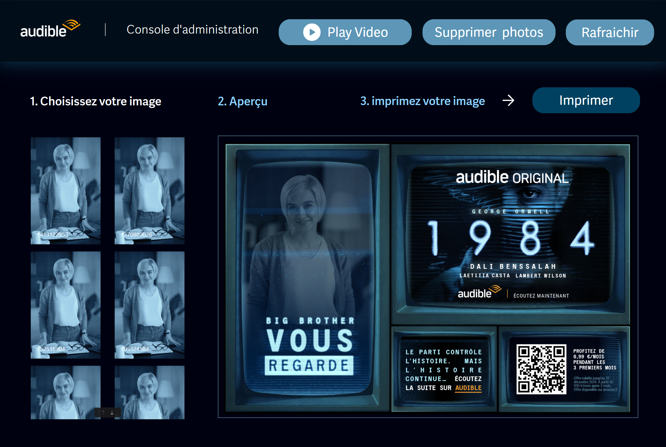 À l’occasion de la sortie de la version audio de 1984 sur Audible, le client souhaitait concevoir une activation événementielle immersive, ouverte au public, au sein de la Gare de Lyon.