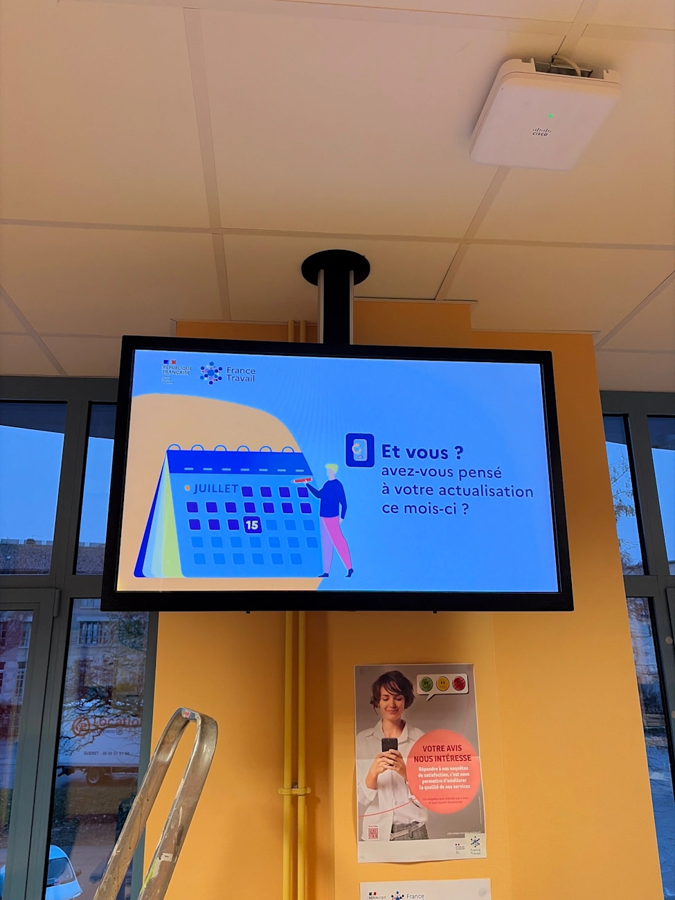 France Travail souhaitait reprendre la maîtrise et la fiabilisation de son parc national d’affichage dynamique, déployé dans l’ensemble de ses agences en métropole et dans les DOM, dans le cadre d’un marché opéré avec Econocom.