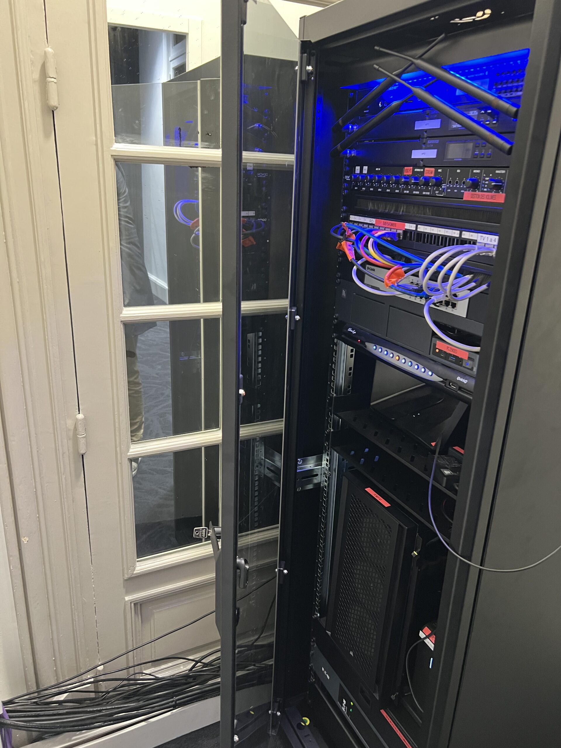 Le besoin consistait donc à concevoir un espace technologique et modulable, favorisant les échanges, la co-construction de solutions et les présentations interactives, tout en respectant les contraintes architecturales d’un bâtiment haussmannien.